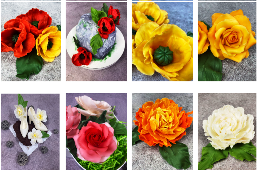 Научитесь изготавливать 4 вида цветов из пластичного шоколада.